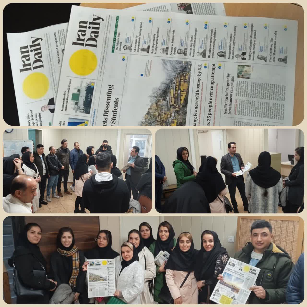 گزارش تصویری بازدید کاربینی از دفتر روزنامه ایران دیلی ۲۲ آذر ۱۴۰۱ کاربینی کاربینی ، کاربینی رشته مترجمی زبان گزارش تصویری بازدید دانشجویان ترم اول رشته مترجمی زبان انگلیسی مرکز از روزنامه irandaily (ایران دیلی)