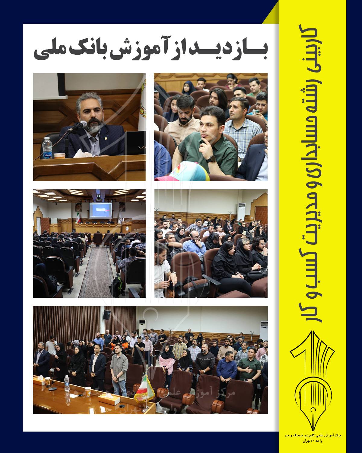 بازدید کاربینی دانشجویان رشته های حسابداری و مدیریت کسب و کار واحد 10 مرکز علمی کاربردی روز دوشنبه 31 اردیبهشت برگزار شد. با توجه به ماهیت درس کاربینی و در راستای آشنایی هر چه بهتر دانشجویان با محیط کار واقعی رشته ، جلسه کاربینی دانشجویان رشته های حسابداری و مدیریت کسب و کار مرکز آموزش علمی کاربردی فرهنگ و هنر واحد 10 در سالن آمفی تئاتر اداره کل آموزش بانک ملی ایران برگزار شد.به گزارش روابط عمومی مرکز علمی کاربردی واحد 10، بازدید کاربینی دانشجویان با حضور و سخنرانی جناب آقای دشتی و حضور جناب آقای مهدی سوهانیان رئیس اداره کل اموزش بانک ملی و دیگر مدیران و دانشجویان جدیدالورود، در سالن آمفی تئاتر اداره کل آموزش بانک ملی ایران برگزار شد. در این جلسه ضمن پخش مستندی در خصوص سابقه بانک و بانک ملی، توضیحاتی توسط جناب آقای دکتر مهدی سوهانیان در خصوص ارتباط بانک با توسعه کسب و کارهای بزرگ و کوچک و نظام مالی کشور در جهت توسعه کشور داده شد.