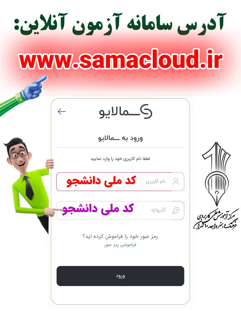 ورود به سامانه سمالایو و آزمون ها صرفا از آدرس samacloud.ir امکانپذیر میباشد.